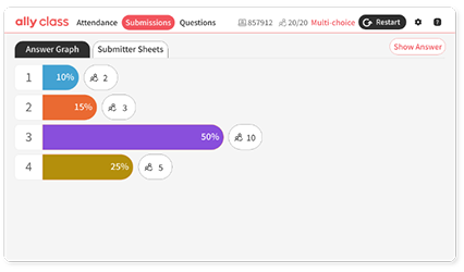 View submission rates and counts in a graph and grade answer sheets.