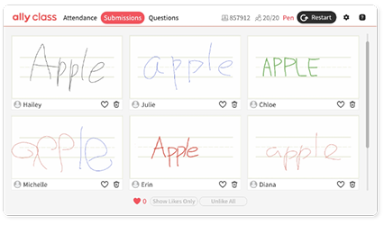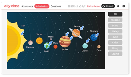 View submitted stickers or handwriting layered on the board, or check them by participant.